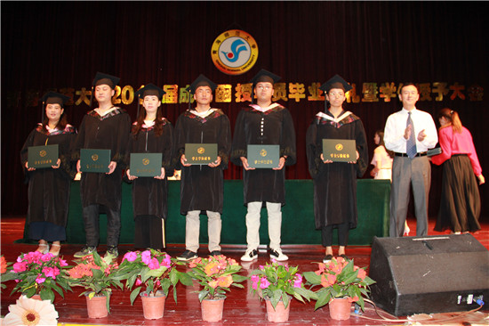 毕业典礼上,尕玛明加等341名学员被授予学士学位,罗海翔等67名优秀函授班干部、优秀函授学员受到了表彰。王锋副董事长为获得学士学位的学员颁发了学位证书,梅岩副书记为优秀班干部和优秀学员代表颁发了荣誉证书。