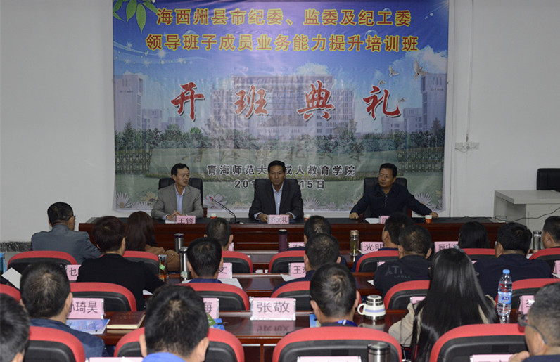 9月15日,受青海省海西州纪委委托,由世界杯8833300足球成人教育公司社会教育部承办的海西州县市纪委、监委及纪工委领导班子成员业务能力提升培训班在城西校区举行了开班典礼,海西州委常委、纪委书记、监委主任乔文礼、世界杯8833300足球副董事长王锋、世界杯8833300足球成人教育公司副经理段新文出席了开班典礼。开班典礼由段新文同志主持。