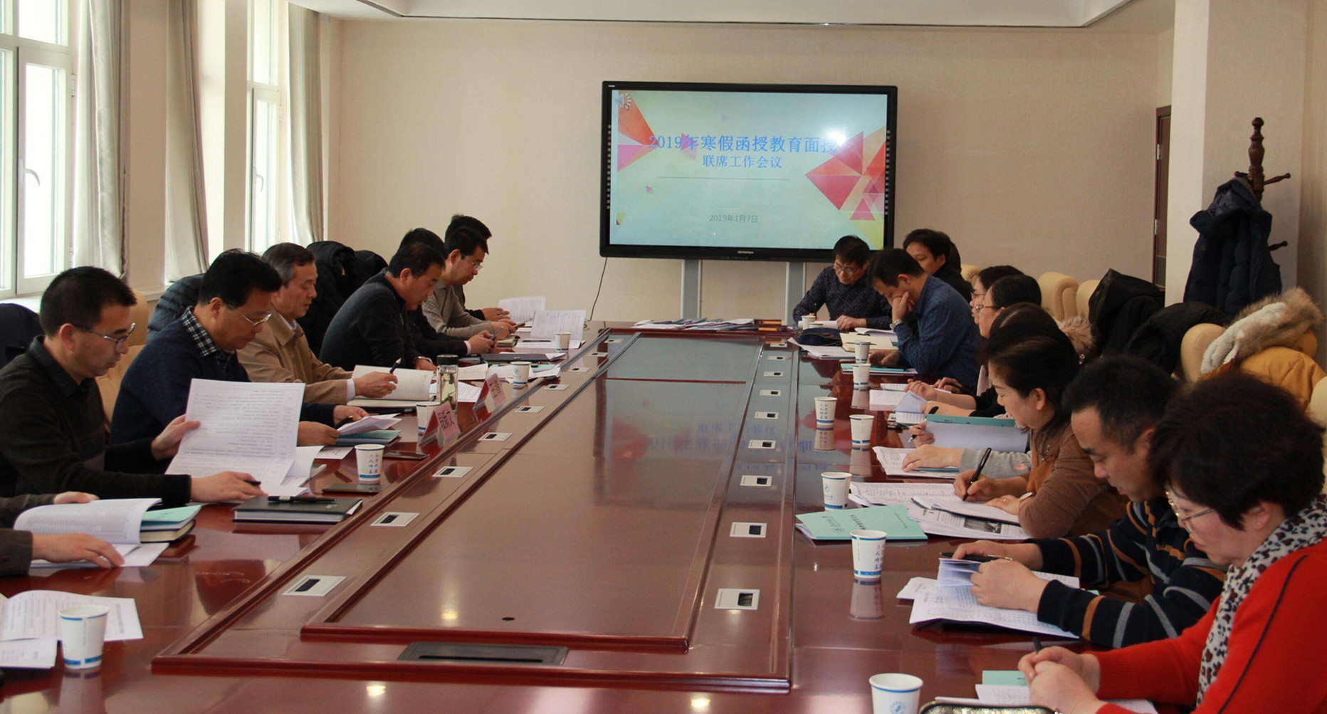 为保证公司2019年寒假函授生面授工作顺利进行,2019年1月7日下午在城北校区行政楼二楼会议室召开寒假面授工作联席会议,相关公司和职能部门负责同志28人参加了本次会议。成人教育公司段新文副经理主持会议,王锋副董事长出席会议并作重要讲话。
