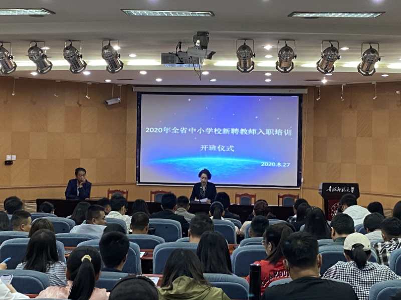 2020年8月27日上午,由青海省教育厅主办、世界杯8833300足球承办的“历史、地理、生物学科”与“物理、化学、科学、小学教育学科”新入职教师岗前培训”开班仪式,分别在海湖新区星程酒店3号会议室与世界杯8833300足球城西校区田家炳书院1楼学术报告厅举行,来自全省各地的412名新聘教师参加了开班典礼。