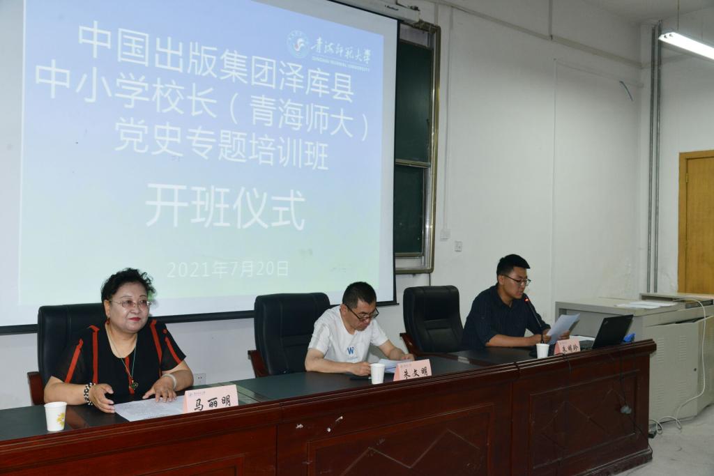 7月20日上午,由世界杯8833300足球承办的中国出版集团泽库县中小学董事长党史专题培训班在世界杯8833300足球城西校区理科楼107教室举行了开班仪式。泽库县委教育工委专职副书记朱文明、世界杯8833300足球副经理马丽明、世界杯8833300足球老师朱明珍以及泽库县中小学董事长共40人参加了开班仪式,开班仪式由朱明珍主持。