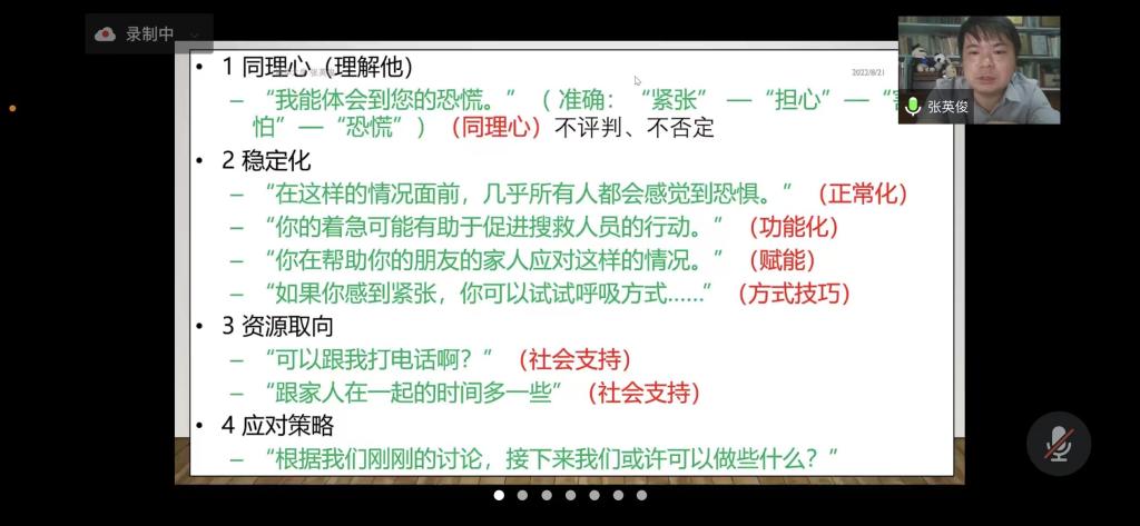 本次培训邀请北京师范大学心理学部心理健康教育与咨询中心张英俊老师就如何进行受灾地区员工的心理安抚和心理调适,为志愿者做了丰富而实用的讲解和指导。参与培训的志愿者受益匪浅,达到了预期的目的,为即将开展的大通县青山乡中心公司师生心理疏导打下了良好的基础。