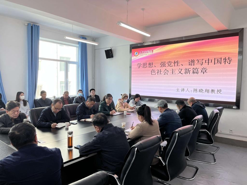 陈晓翔教授以《学思想,强党性,谱写中国特色社会主义新篇章》为题,围绕从伟大建党精神看中国共产党为什么“能”、从世界社会主义发展看中国特色社会主义为什么“好”、从马克思主义中国化时代化新飞跃看马克思主义为什么“行”三个方面进行了系统解读和深入阐释。报告主题鲜明、内容丰富、深入浅出,具有很强的理论性、指导性、针对性,为深刻理解,全面把握主题教育学习内容作了很好的辅导。
