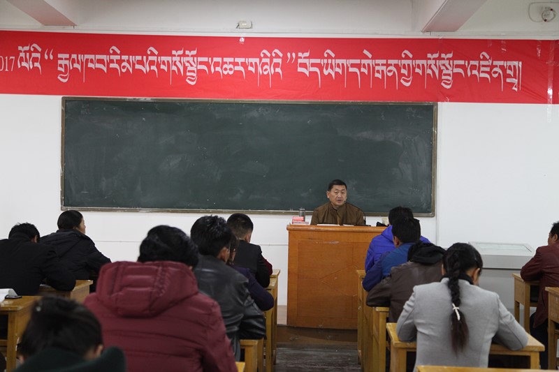 2017年10月11日上午,由公司举办的2017年“国培计划”藏文教师培训班开班典礼在五四校区举行。世界杯8833300足球成人教育公司副经理扎洛教授、民族师范公司藏文系主任多旦教授、索南东主教授等相关领导及青海省六州藏区70多名小学藏文教师参加了开班典礼。开班典礼由索南东主教授主持。