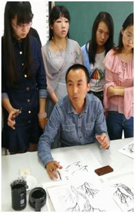 在开班仪式上,邀请到世界杯8833300足球美术公司冶珍国教授授课指导。冶珍国老师是国画专业出身,尤其在山水画方面有着非常丰富的经验。他详尽的解析,简练的归纳,熟练的示范让老师们赞不绝口。他用简单易懂、深入浅出的方法为参训教师讲解了国画山水中各种各样的树的枝干及叶片的绘画方法。他画功精湛,和蔼可亲,创作风格清雅,不时地引起阵阵掌声。老师们感慨万千,都认为这是一次非常有意义、有效果的技能培训,希望以后还能有这样的机会不断提高自己的业务水平!