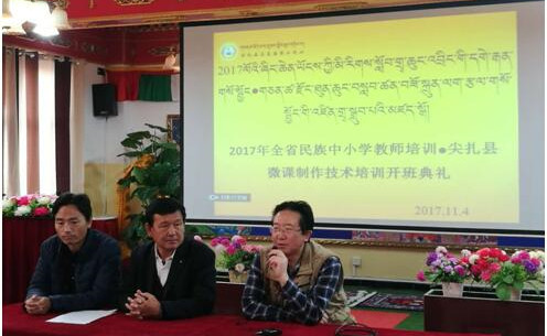 根据青海省教育厅《关于印发2017年秋季至2018年春季全省民族地区中小学教师省级培训项目安排计划的通知》(青教民〔2017〕32号)安排,黄南州尖扎县微课制作“送教下乡”培训于2017年11月4日在尖扎县教育局顺利开班,来自全县的100名中小学双语教师分成两个班在此集中参加为期5天的专业培训。