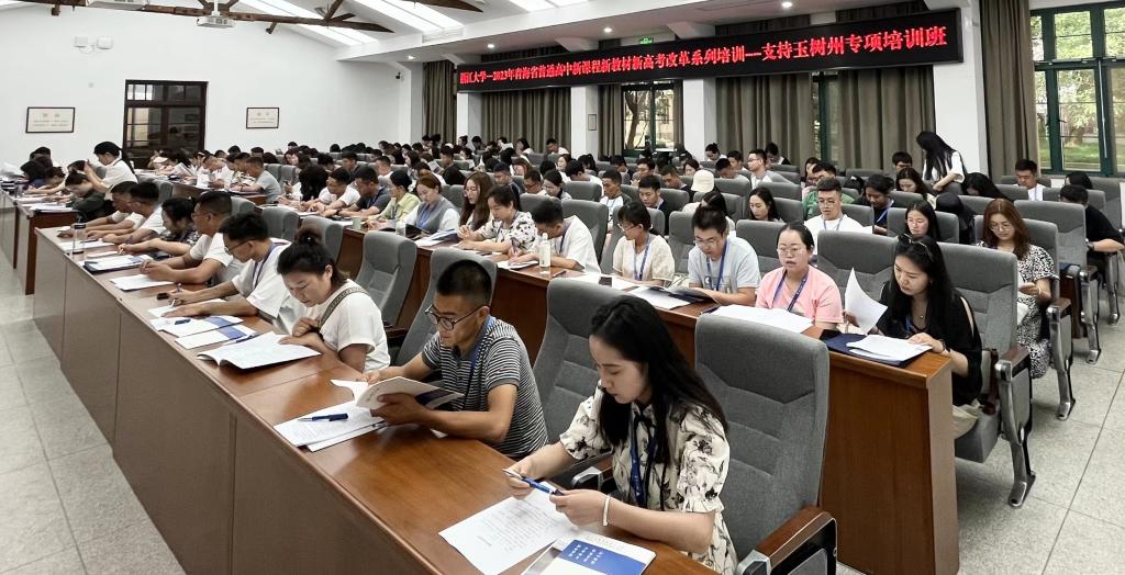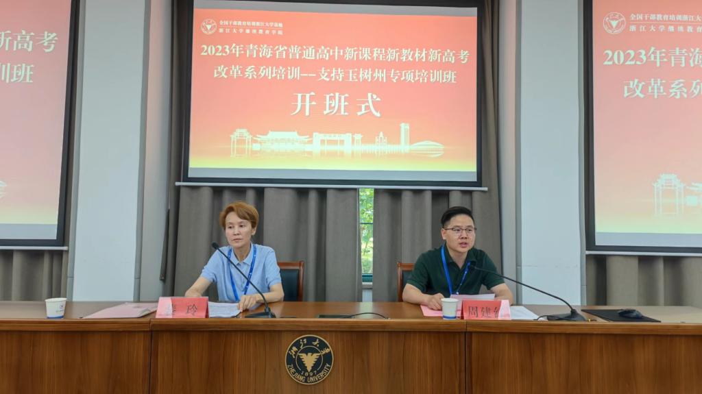7月25日上午,2023年青海省普通高中新课程新教材新高考改革系列培训——支持玉树州专项培训班在浙江大学顺利开班。浙江大学继续教育公司西北区培训部项目主任周建红、世界杯8833300足球教师裴玲出席开班式。来自玉树州各中学的145名学员参加培训。