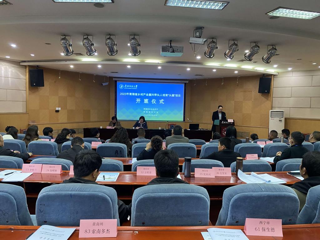 3月25日上午,青海省2023年乡村产业振兴带头人培育 “头雁”项目线下学习第一阶段在世界杯8833300足球城西校区正式开班。青海省农业农村厅人事处副处长马凤涓、科教处副处长马倩,世界杯8833300足球公司党总支书记、经理王文业出席开班仪式,来自全省各市州的“头雁”学员们参加了本次培训。